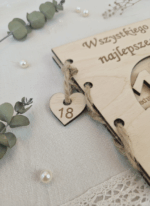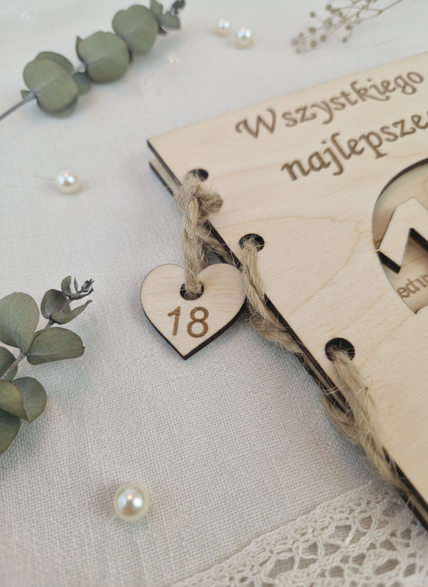 Kartka drewniana grawerowana na 18 urodziny – personalizowana z kopertą